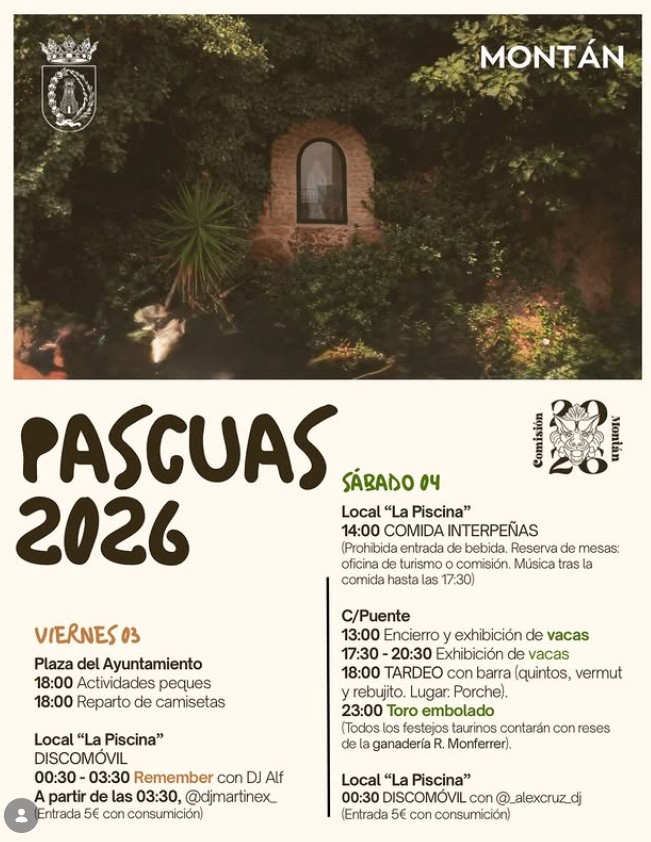 Pascuas Montán 2026 Viernes 3 Plaza del Ayuntamiento 18:00 - Actividades para peques 18:00 - Reparto de camisetas Local "La […]