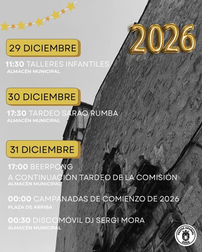 NOCHEVIEJA ARAÑUEL · 2026 29 de diciembre 11:30 h Talleres Infantiles 📍 Almacén Municipal 30 de diciembre 17:30 h […]
