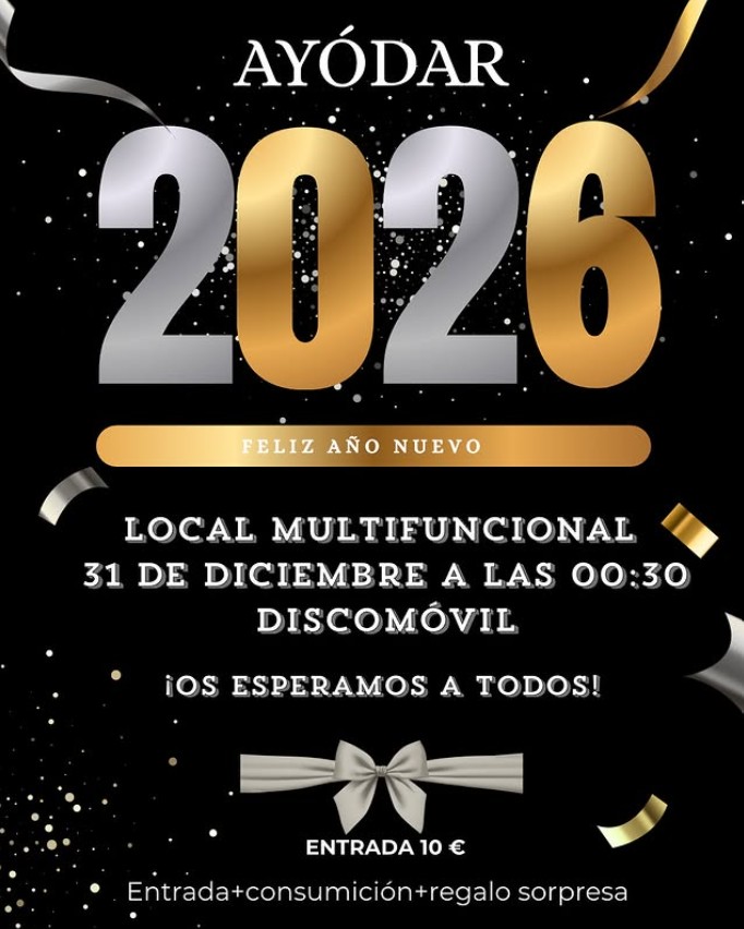 AYÓDAR 2026 FELIZ AÑO NUEVO 📍 Local Multifuncional 📅 31 de diciembre · 🕧 00:30 h 🎶 Discomóvil ¡Os esperamos […]