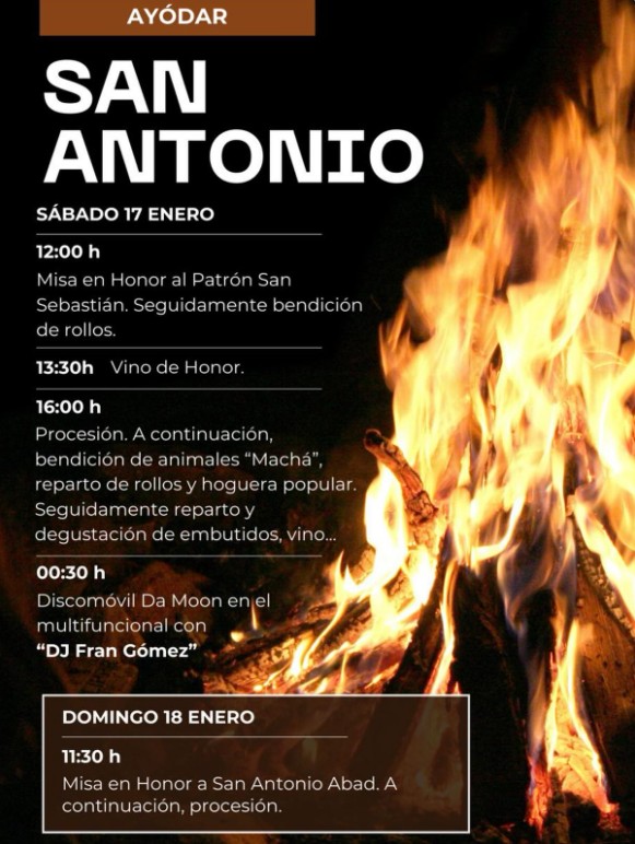 San Antonio 2026 Fuentes de Ayódar Sábado 17 de enero 17:30: Apertura de la tasca. 19:00: Misa en honor a […]