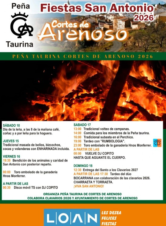 Peña Taurina Cortes de Arenoso Fiestas San Antonio 2026 Sábado 10 08:00: Día de la leña, café, coñac y a […]